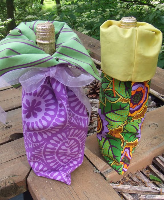 This is also the happy season for weddings and graduations. Here are two wine/gift cozies that will dress up those bottles of bubbly for the celebrations. They were designed by my buddy, Melissa Peda of San Diego. You can find these designs in other fabrics at her inspiring Etsy shop.