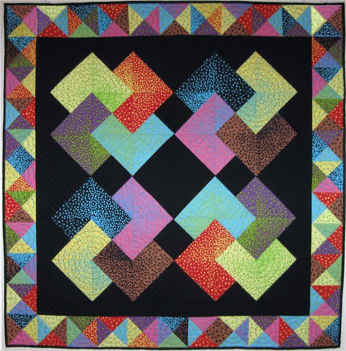 Here is a detail of the quilting done by my friend, Audrey Esarey in Louisville, Kentucky. She used a clear top thread which doesn’t compete for attention, but adds some nice texture and movement. It also helps to blend the kaleidoscopic elements together.