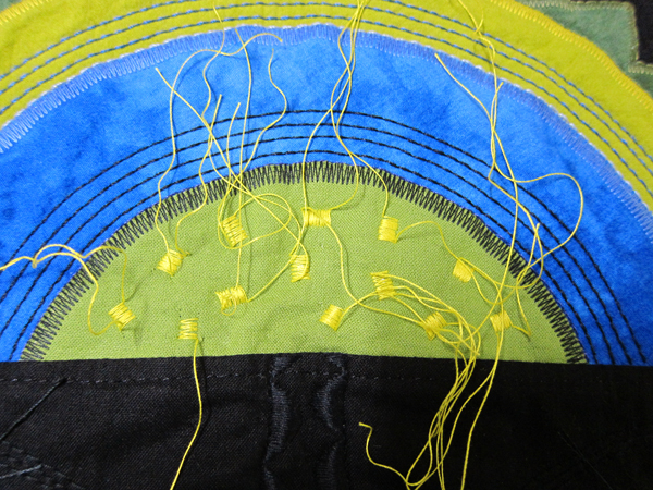 I got several emails this week asking about the quilting on the Folk Art Flag from last weeks post. Here is how I did it… I draw my quilting lines on Golden Threads paper and pin the paper to the quilt. Using 12wt thread through the top of the machine and a matching color of 50wt in the bobbin, I stitch right through the paper.