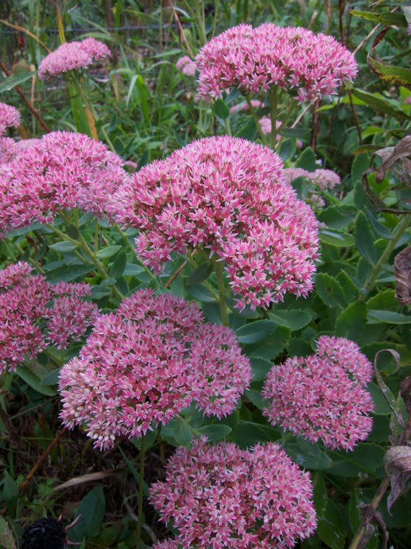 The sedum have their fresh colors on display, too, adding more pink to the overall color scheme