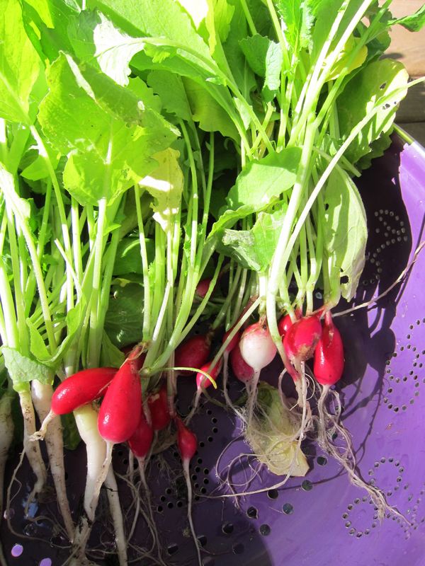 Summer is rushing forward! Greg has been cleaning, clearing, trimming and planting. This is the first time he has planted radishes. Aren’t they gorgeous? The tomatoes are in the ground and the basil is waiting its turn.